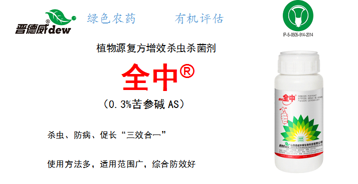 本品是按照“君臣佐使”組防原則,將苦參堿與多種中草藥成分科學(xué)配伍而成的一種復(fù)方增效型殺蟲(chóng)殺菌劑,無(wú)殘留、無(wú)污染、無(wú)抗藥性、無(wú)毒副作用,符合有機(jī)農(nóng)產(chǎn)品檢測(cè)標(biāo)準(zhǔn)要求。在農(nóng)業(yè)上使用可有效防治蚜蟲(chóng)、紅蜘蛛、介殼蟲(chóng)、白粉虱、金龜子、菜青蟲(chóng)、夜盜蛾、稻螟蟲(chóng)和螻蛄、蠐螬、地老虎、金針蟲(chóng)等地下害蟲(chóng),同時(shí)還可以兼治瓜果白粉病,梨樹(shù)黑斑病、黑星病、炭疽病,桃褐腐病,玉米大(?。┌卟?,水稻紋枯病,龍眼荔枝霜疫霉病,馬鈴薯晚疫病等多種病害,并能顯著刺激植物生長(zhǎng),促進(jìn)植物康復(fù)。