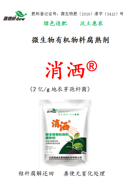 本品是一種高活生微生物有機物料快速腐熟菌劑,采用冷凍干燥技術(shù)將高活性腐解菌(包含多種細菌、真菌、酵母菌)與營養(yǎng)激活劑制備為一體。能快速腐熟菌劑. 適合富含難降解纖維素、木質(zhì)素的堆材、秸稈和糞便處理,富含的真茵、?細菌還可以殺滅有害病菌和蟲卵,產(chǎn)生更多的有機腐植酸和更高的氮磷鉀含量,快捷制成高含量有效活菌的微生物有機菌肥。