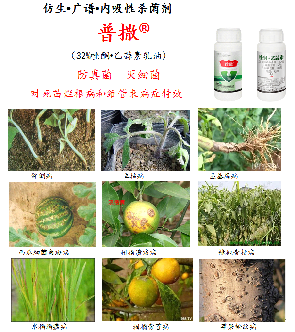 【適用范圍廣】廣泛用于水稻、玉米、辣椒、番茄、白菜、草莓、白術(shù)、人參、香蕉、蘋果、 柑橘、葡萄、 梨樹、茶葉、馬蹄,花卉、花生、大豆、芝麻等作物上的多種病害。